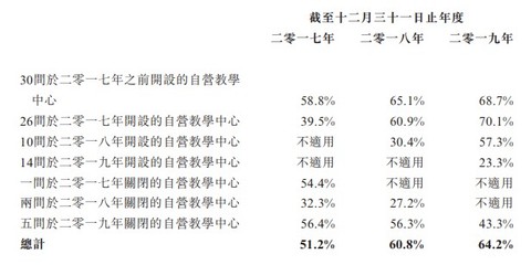 公司自营教学中心的使用率不断提高,截至2019年12月31日止年度,使用率为64.2%。